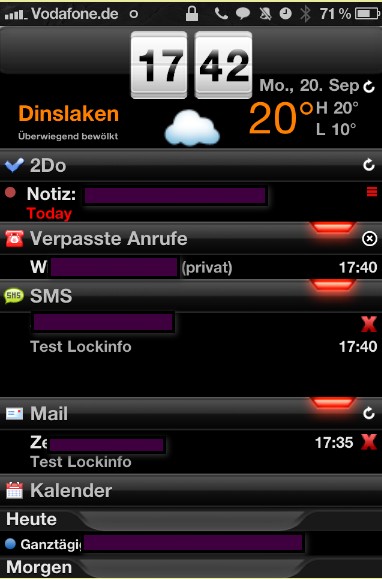 Ist euch aber schon mal aufgefallen, dass wenn die Icons nach einem jeweiligen Ereignis aktiviert und angezeigt werden, die Lockinfo-Meldung im Lockscreen unter Anrufe, SMS und Mail nicht mehr angezeigt werden, sondern nur noch die Icons (in der Statusbar)?
