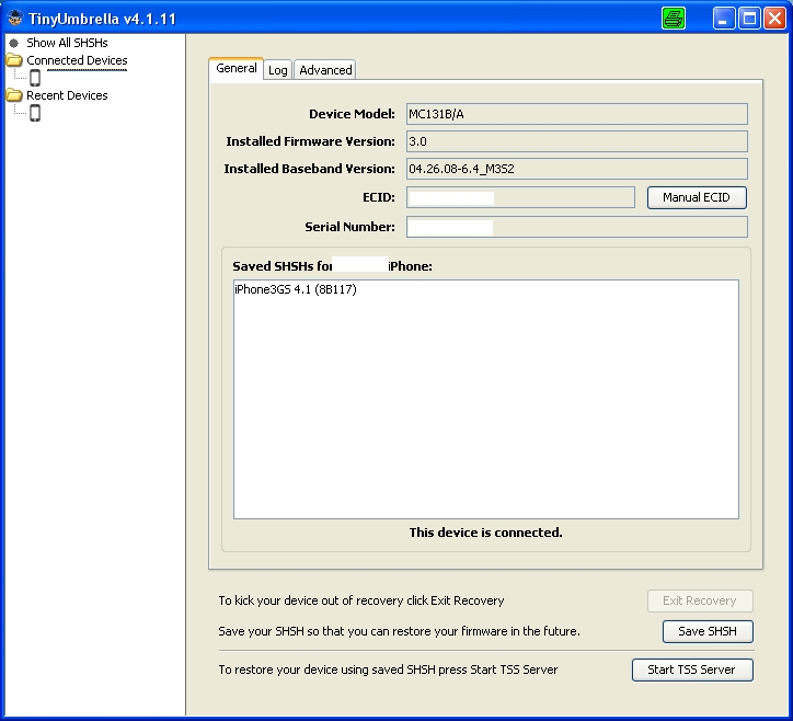 Ich habe einen Auszug von TinyUmbrella mit SHSH angehängt.